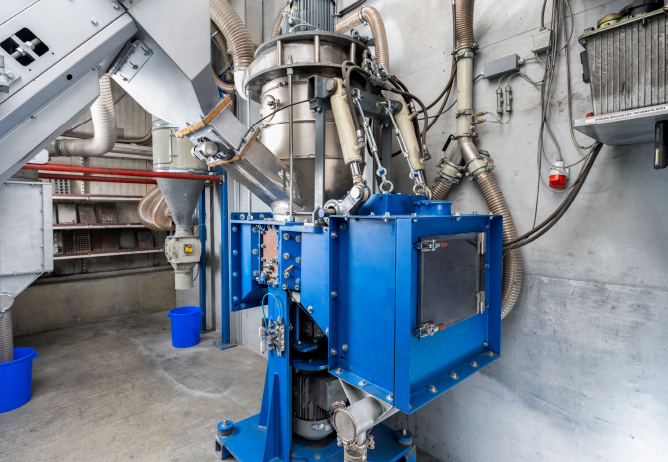 Die Flügel von Windkraftanlagen aus CFK werden in grob zersägten Stücken in den Prallreaktor befördert.